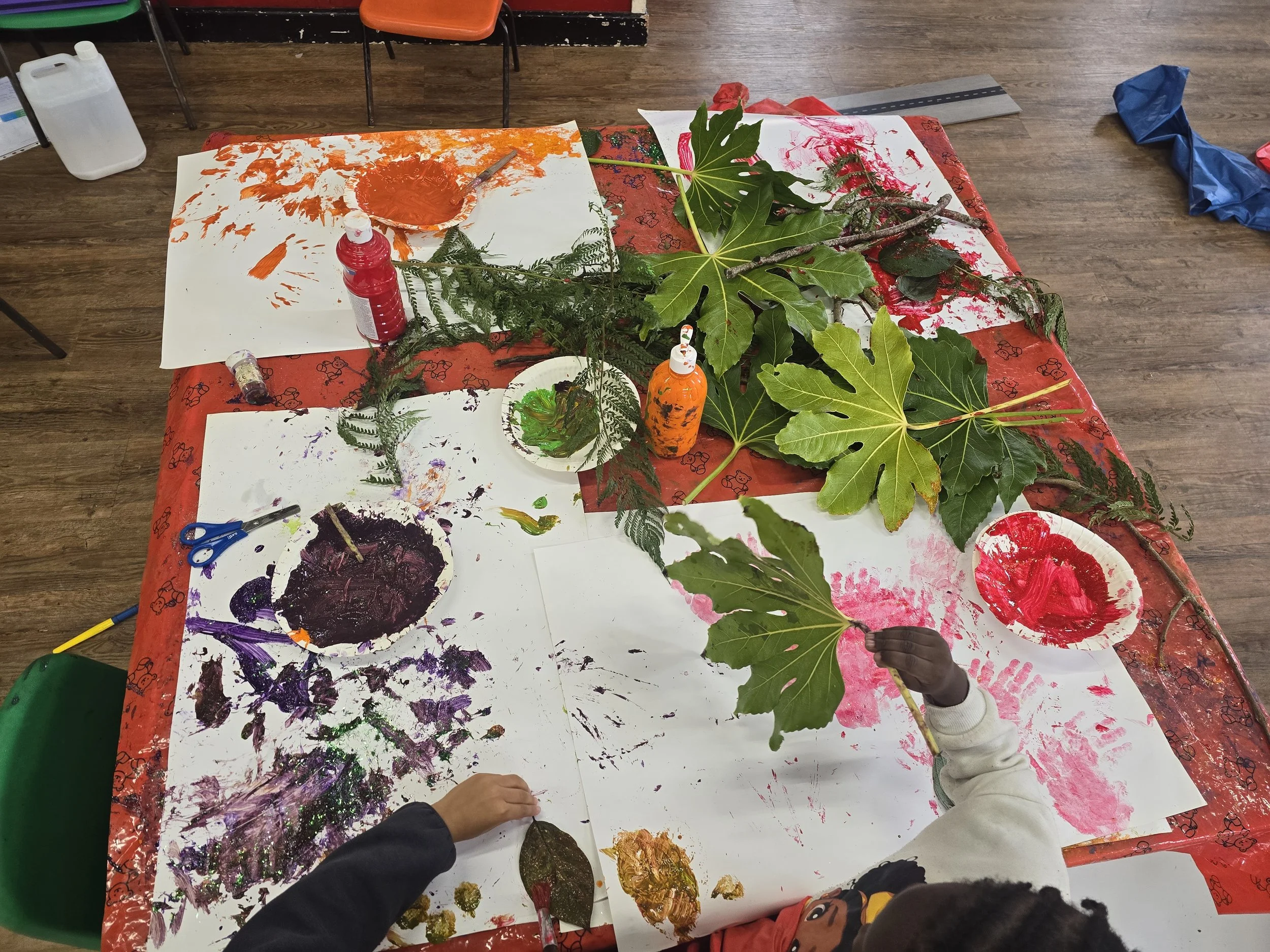 This week the children have enjoyed painting and decorating the large leaves collected.